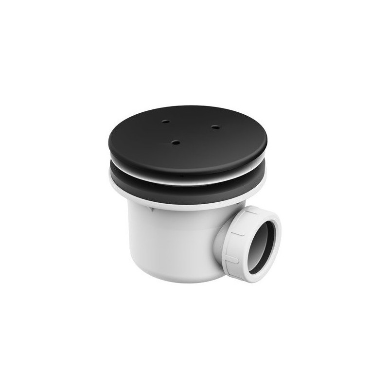 Dušo padėklo sifonas, Juodos spalvos metalinis dangtelis, Originalus dizainas, Vandens pralaidumas - 32 l/min., Skersmuo - 9 cm, 3 metų garantija