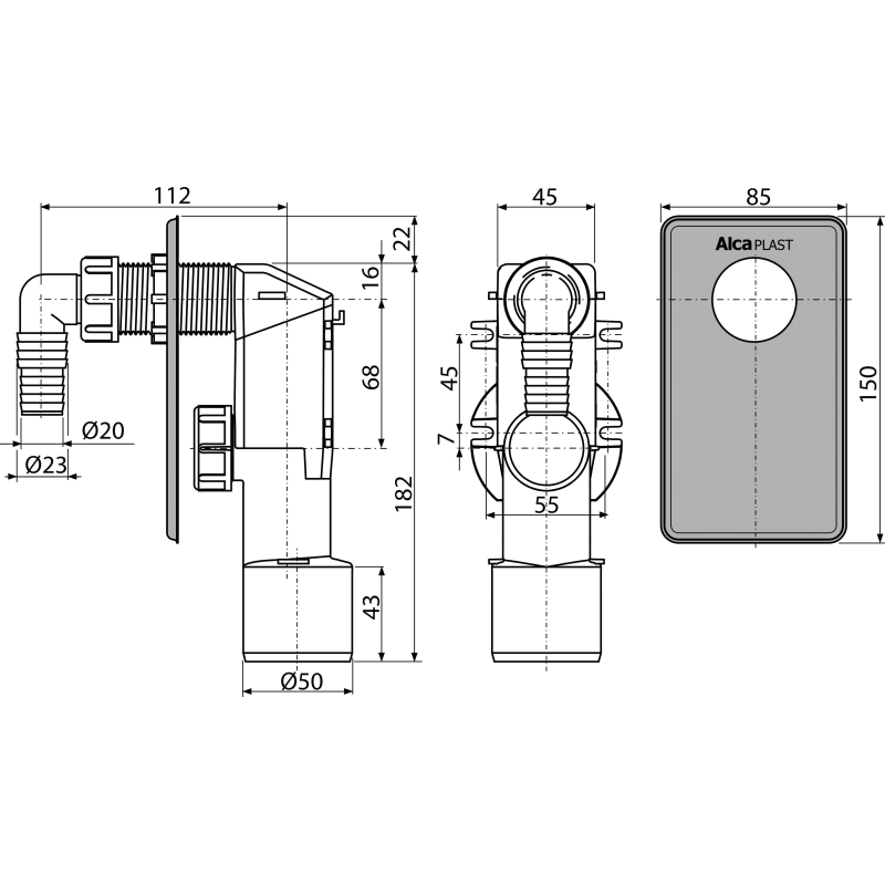 Sifonas skalbimo mašinai/indaplovei Alca Plast APS3, potinkinis