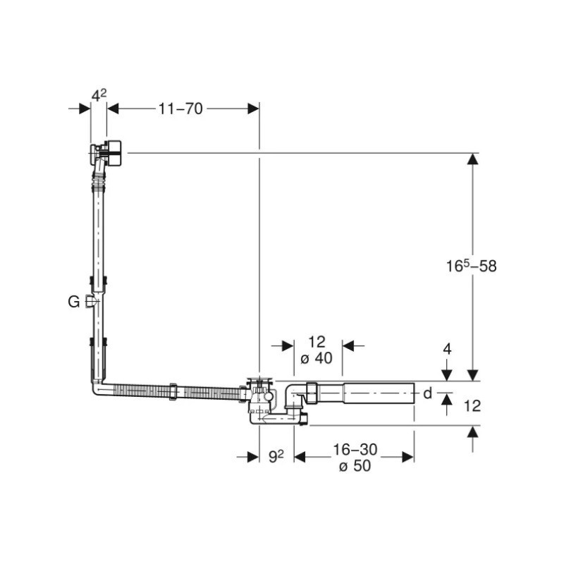 Sifonas ir trapas voniai Geberit, su perpylimo sistema, G 1"