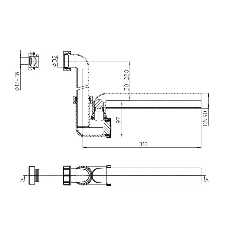 Sifonas kondensato surinkimui, Horizontalus, Su atbuliniu vožtuvu, DN40x5/4", Su hidrouždoriu (60 mm), Su sulaikančiu kvapus įtaisu, 2 metų garantija