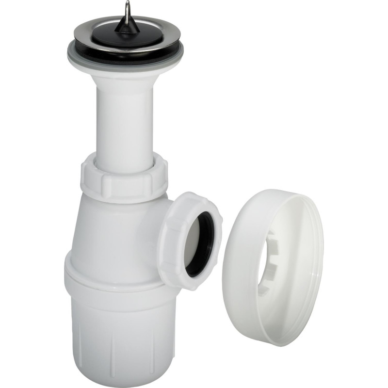 Praustuvo sifonas, Su nusėsdintuvu ir ventiliu, Be vamzdelio, DN 32, Plastikinis, Baltos spalvos, 2 metų garantija