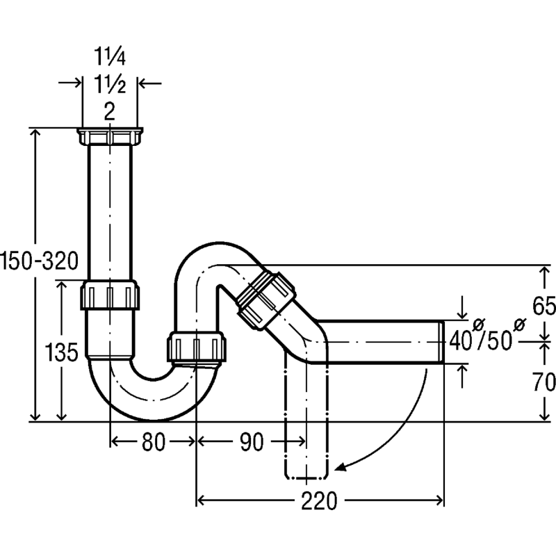Plautuvės sifonas, 45°, Be ventilio, DN 40, G 1 1/2", Plastikinis, Baltos spalvos, 2 metų garantija