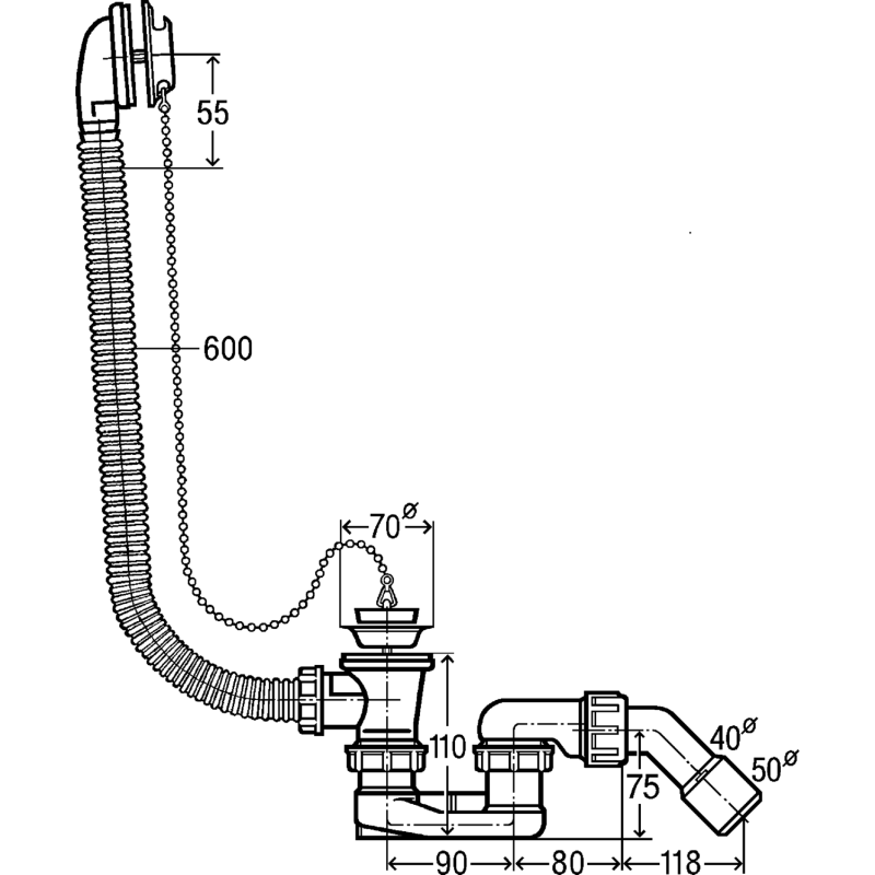 Vonios sifonas, Su perpylimo sistema, DN 40/50, 45°, Baltos spalvos, Su kvapo gaudykle, 2 metų garantija