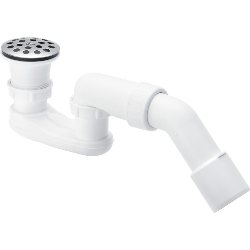 Dušo padėklo sifonas, 45°, Su metaliniu ventiliu, DN 40/50, G 1 1/2", Plastikinis, Baltos spalvos, 2 metų garantija