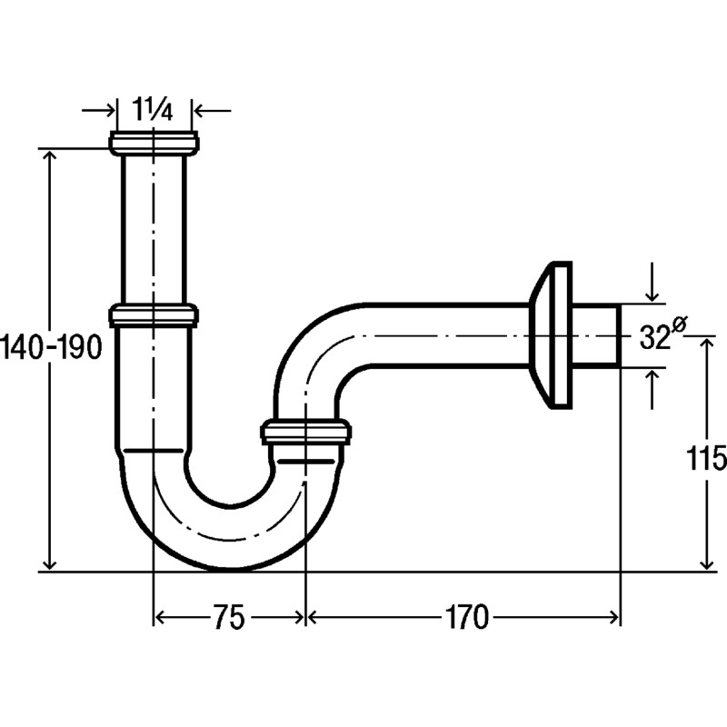 Praustuvo sifonas Viega, be ventilio, vamzdelinis, DN 32. Pagamintas iš žalvario, chromo spalvos. Suteikiama 2 metų garantija