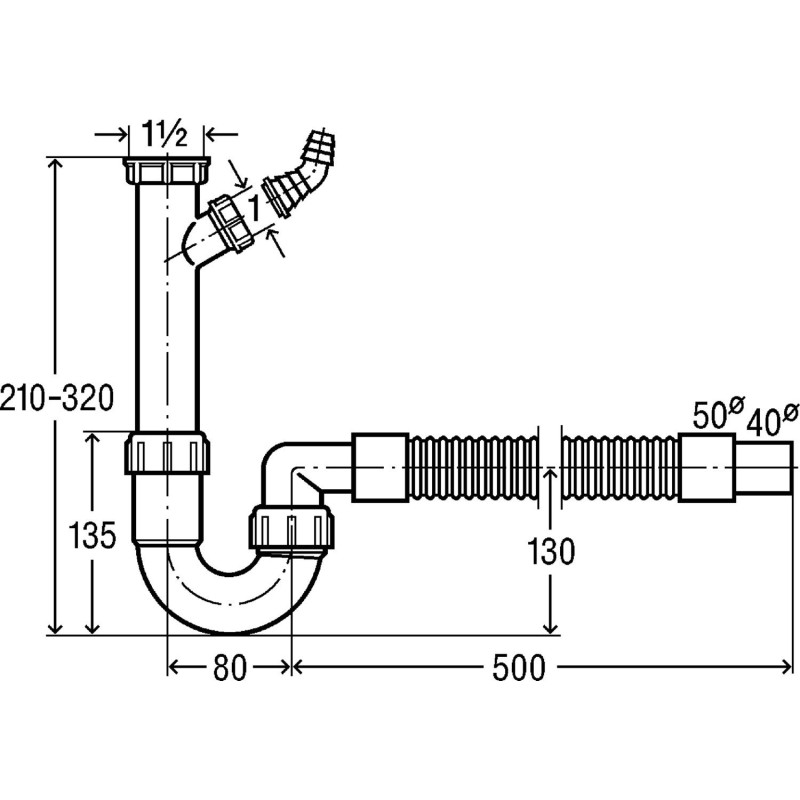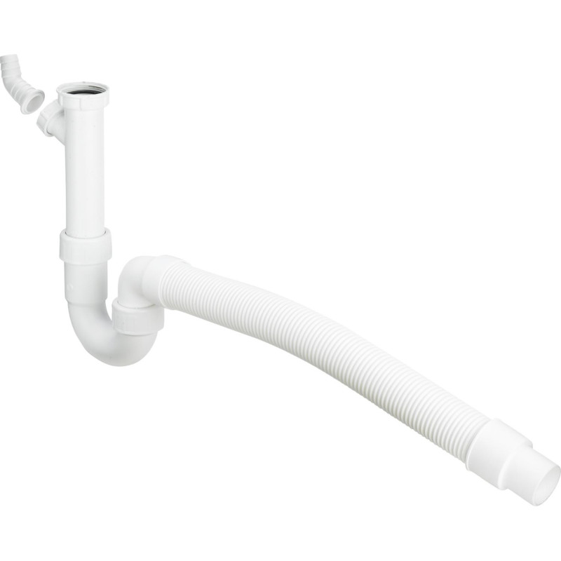 Sifonas plautuvei, Su lanksčiu nubėgimo vamzdžiu, Be ventilio, DN 40/50, G 1 1/2", Plastikinis, Baltos spalvos, Su pajungmu skalbimo mašinai, 2 metų garantija