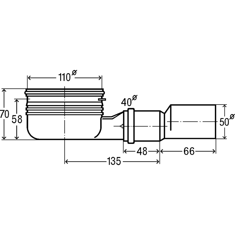Sifonas dušo latakui, Su kvapo gaudykle, DN 40/50, Plastikinis, Baltos spalvos, Montavimo aukštis - 95 mm, 2 metų garantija