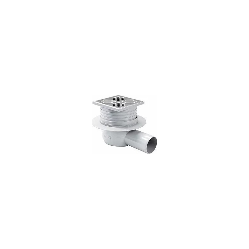 Dušo trapas Vogi, Horizontalus, Šlapias sifonas, Su nerūdijančio plieno grotelėmis (105x105 mm), Šoninis horizontalus pajungimas - DN50, Vandens pratekamumas - 50 l/min.