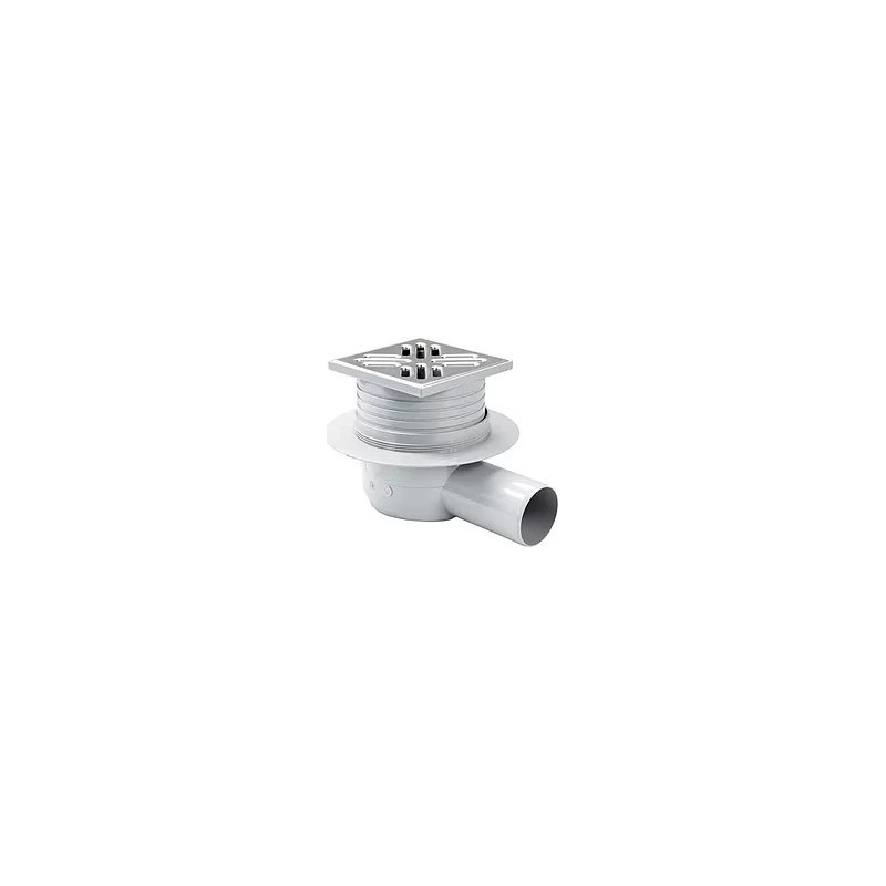 Dušo trapas Vogi, Horizontalus dvigubas, Sausas sifonas, Su nerūdijančio plieno grotelėmis (105x105 mm), Šoninis horizontalus pajungimas - DN50, Vandens pratekamumas - 50 l/min.