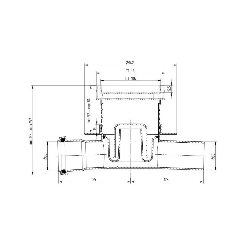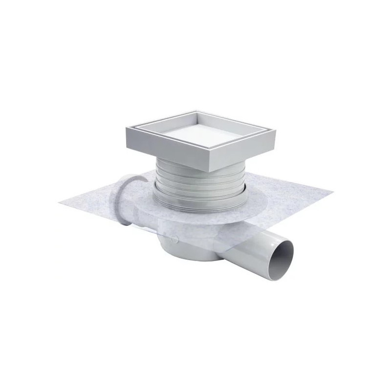 Dušo trapas Vogi Evo, Horizontalus dvigubas, Šlapias sifonas, Su membrana, Su įklijuojama plytele (105x105 mm), Šoninis horizontalus pajungimas - DN50, Vandens pratekamumas - 50 l/min.