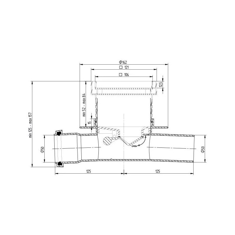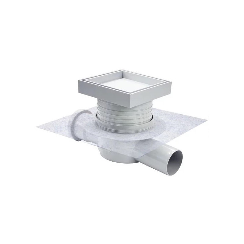 Dušo trapas Vogi Evo, Horizontalus dvigubas, Sausas sifonas, Su membrana, Su įklijuojama plytele (105x105 mm), Šoninis horizontalus pajungimas - DN50, Vandens pratekamumas - 50 l/min.