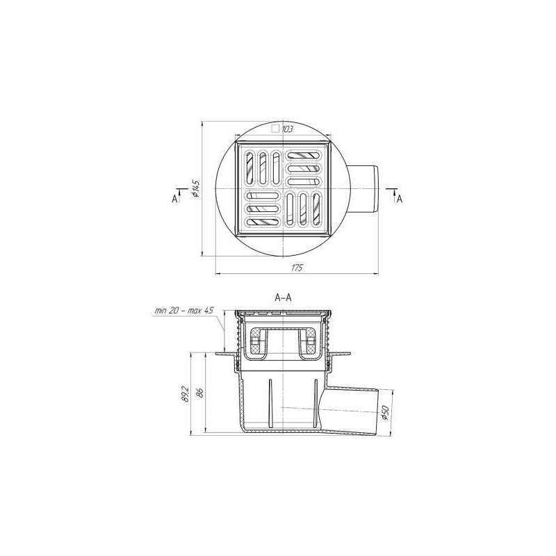 Grindų trapas Ani Plast TQ5602, 100x100 mm, su nerūdijančio plieno grotelėmis ir rėmeliu, sausas. Trapas yra su horizontaliu ištekėjimu (DN50), reguliuojamu aukščiu (8 - 45 mm). Maksimali trapo apkrova - 300 kg. Suteikiama 10 metų garantija.