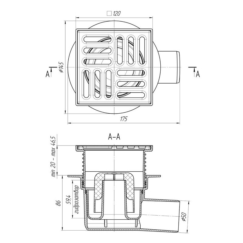 Grindų trapas Ani Plast TQ5614, 120x120 mm, su nerūdijančio plieno grotelėmis ir rėmeliu, sausas. Trapas yra su horizontaliu ištekėjimu (DN50), reguliuojamu aukščiu (9.5 - 46.5 mm). Maksimali trapo apkrova - 300 kg. Suteikiama 10 metų garantija.