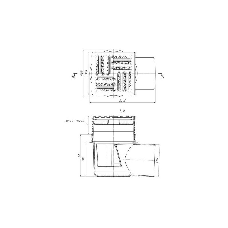 Grindų trapas Ani Plast TQ1612, 150x150 mm, su nerūdijančio plieno grotelėmis ir rėmeliu, sausas. Trapas yra su horizontaliu ištekėjimu (DN110), reguliuojamu aukščiu (20 - 63 mm). Maksimali trapo apkrova - 300 kg. Suteikiama 10 metų garantija.