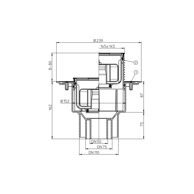 | Trapo pajungimas | DN50;DN75;DN110 |