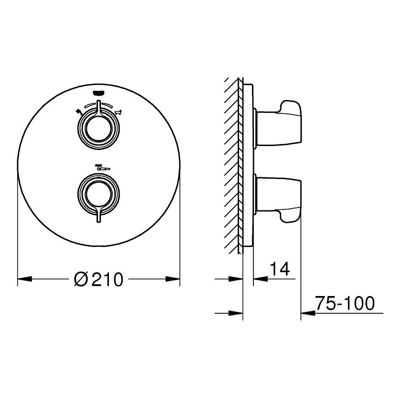 Termostatinio vonios maišytuvo dekoratyvinė dalis, Potinkinė dalis perkama atskirai (Grohe 35500000), Chromuota, Maks. vandens temperatūros kontrolė, Tvirtinamas prie sienos, 5 metų garantija