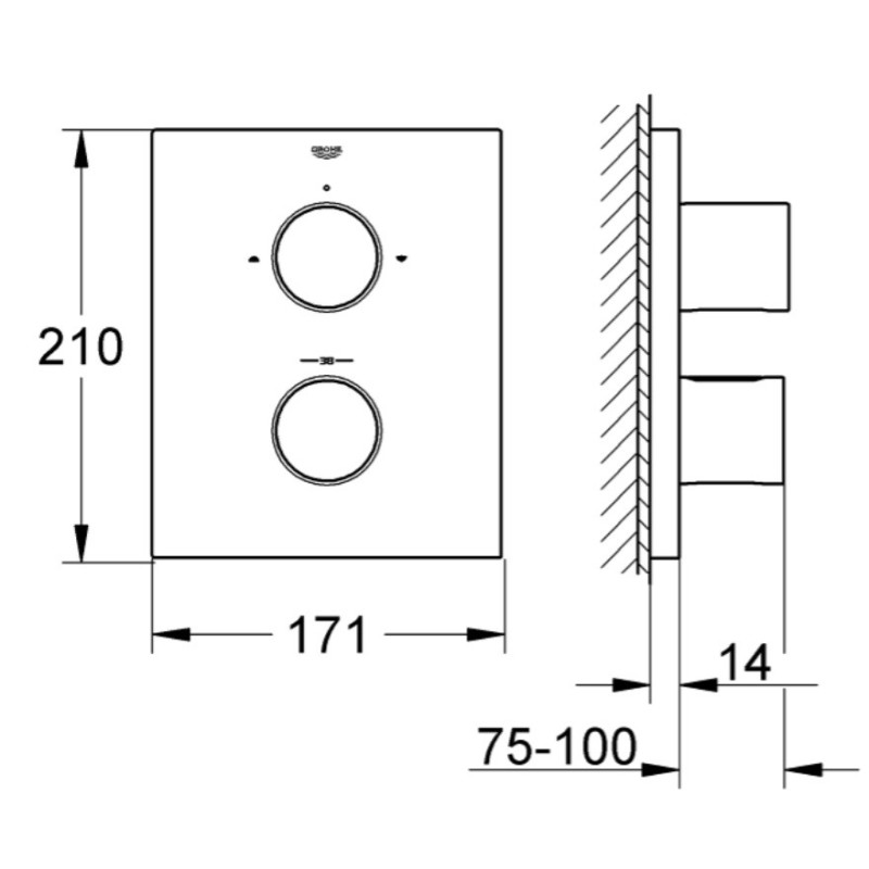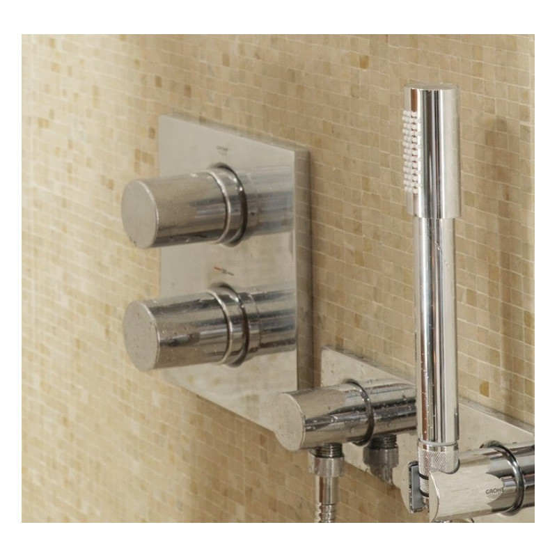 Termostatinio vonios/dušo maišytuvo dekoratyvinė dalis Grohe Grohtherm F, chromuota. Grohe StarLight apdaila padeda lengvai prižiūrėti dekoratyvinę dalį, todėl nereikia didelių pastangų ją valant. Lengvai valdomas vandens srovės stiprumas. Maišytuve Grohe Grohtherm F integruota SafeStop funkcija, kuri leidžia nustatyti maks. vandens temperatūrą. Termostatinis maišytuvas padės palaikyti tą pačią temperatūrą, todėl maudymasis duše taps dar malonesnis ir komfortiškesnis. Suderinama su Grohe Rapido SmartBox 35500/35050000. Suteikiama 5 metų garantija.