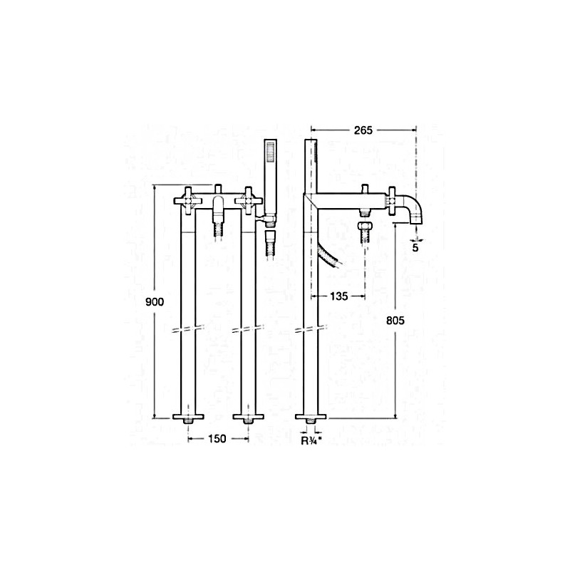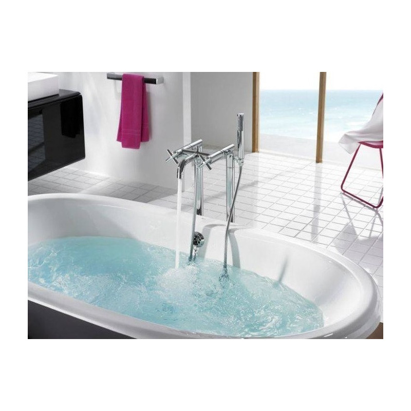 Vonios maišytuvas, Chromuotas, Montavimas ant grindų, Su dušo komplektu, Dvi valdymo rankenėlės, Pajungimas - G 1/2", Automatinis perjungiklis, 5 metų garantija