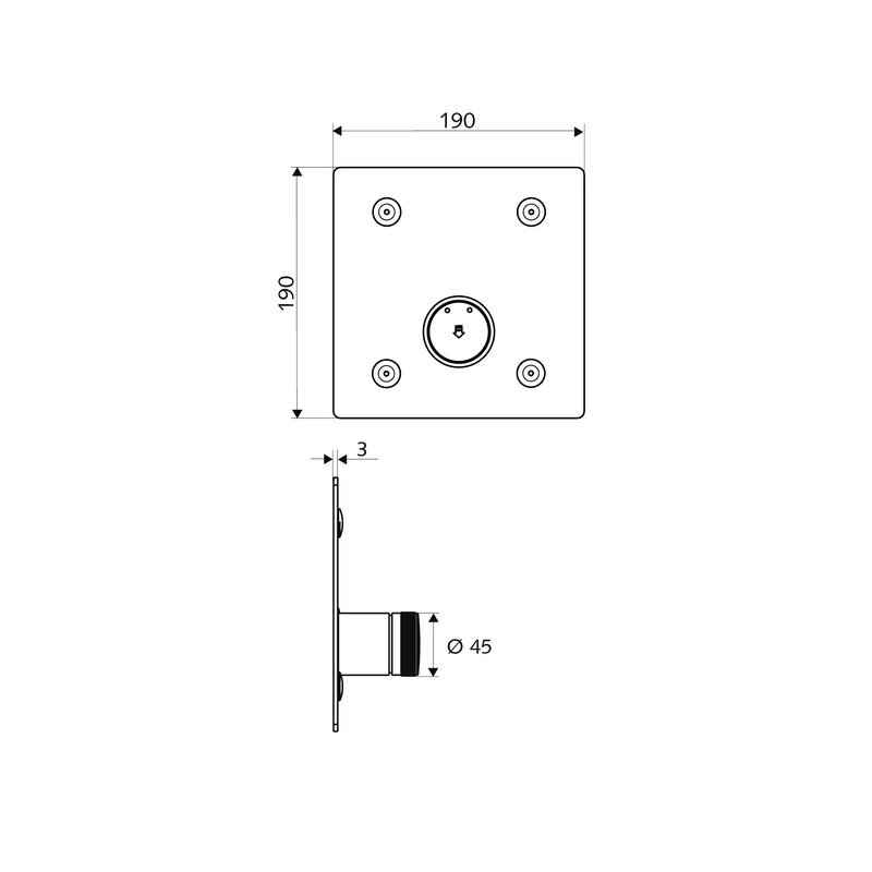 - Matmenys(PxAxG) - 190x190x3 mm
