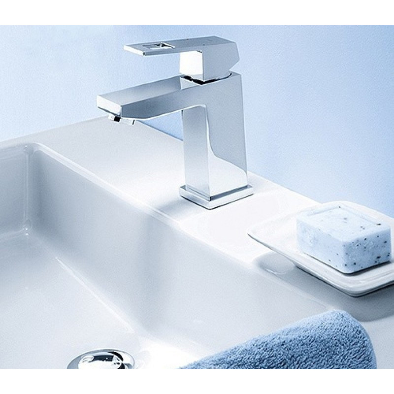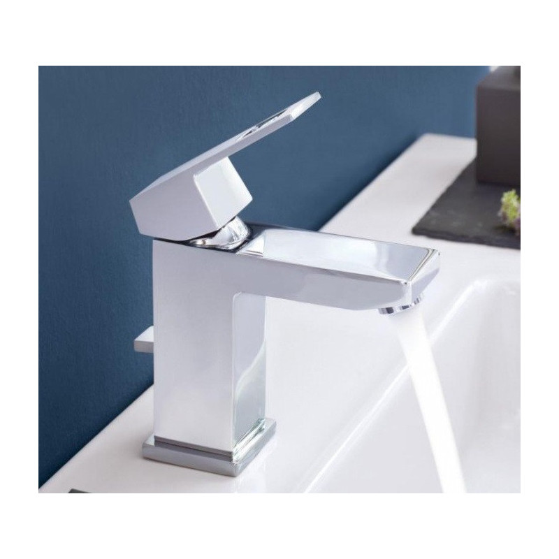 Praustuvo maišytuvas Grohe Eurocube, chromo spalvos. Grohe StarLight apdaila padeda lengvai prižiūrėti praustuvo maišytuvą, todėl nereikia didelių pastangų jį valant. "SilkMove" 28 mm keramikos kasetė užtikrina sklandų ir ilgaamžį maišytuvo veikimą. Maišytuvo valymui naudojamas tik vanduo ir muilas, kad jo paviršius liktų nepažeistas. Maišytuvas valdomas su metaline svirtimi per vidurį. Modernus Grohe Eurocube maišytuvo dizainas derinasi prie įvairaus vonios interjero, todėl tai puikus pasirinkimas, norintiems išskirtinio praustuvo maišytuvo. Praustuvo maišytuve įrengtas temperatūros ribotuvas ir EcoJoy technologija, kuri padės sutaupyti vandens. Suteikiama 5 metų garantija.