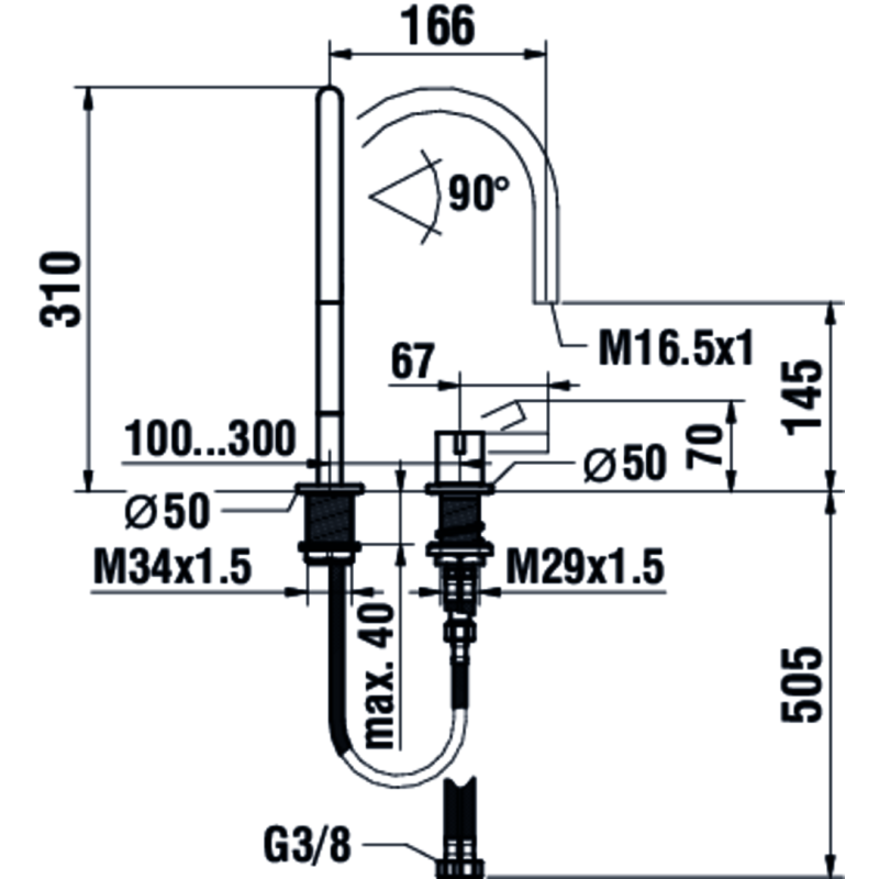 | Maišytuvo valdymo tipas | Iš šono |