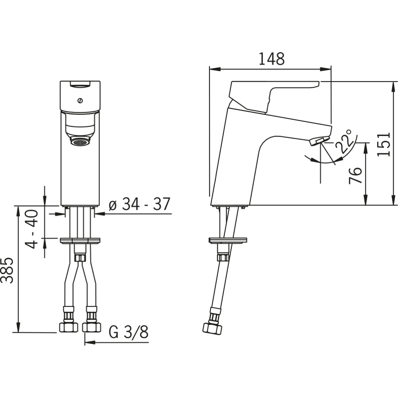 - Vandens pajungimas - G 3/8" (lankstūs vamzdeliai)