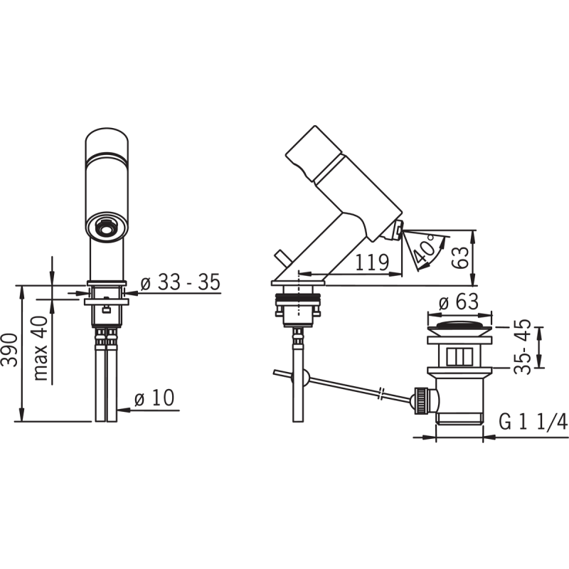 | Maišytuvo valdymo tipas | Per vidurį |