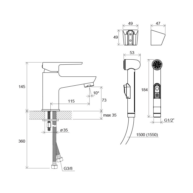 - Su bidė dušelio komplektu