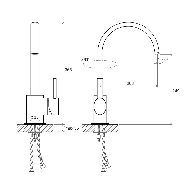 - Vandens pajungimas - G 3/8" (lankstūs vamzdeliai)