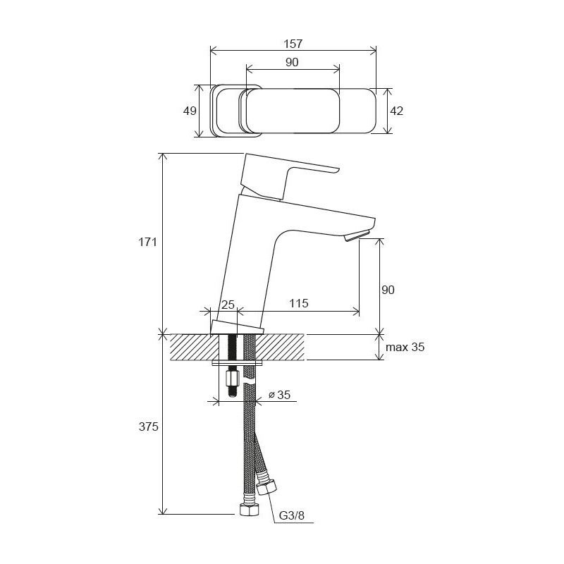 - Vandens pajungimas - G 3/8" (lankstūs vamzdeliai)