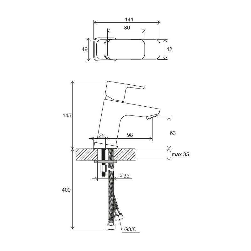 - Visas aukštis - 145 mm