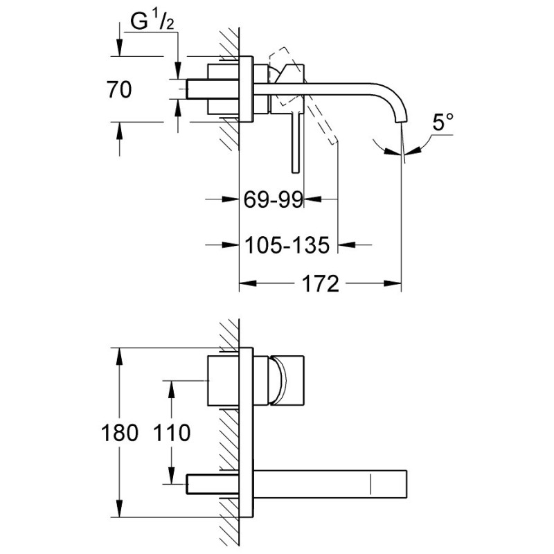 Praustuvo maišytuvas iš sienos Grohe Allure S, chromas