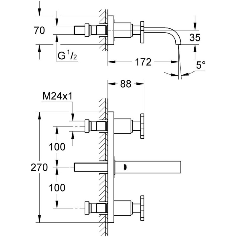 Praustuvo maišytuvas iš sienos Grohe Allure S, 3 skylės