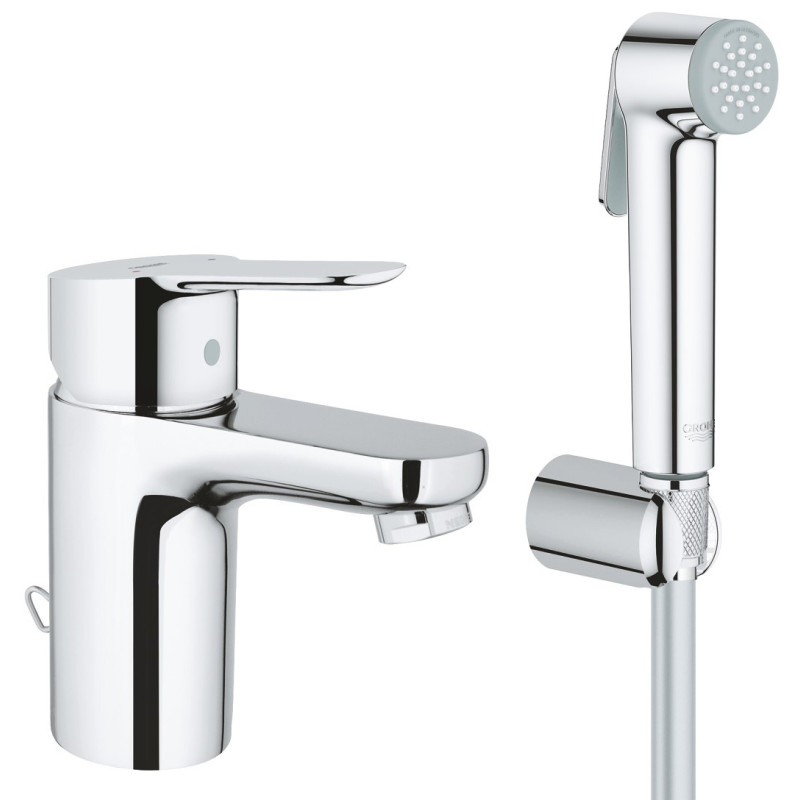 Praustuvo maišytuvas Grohe BauEdge, chromo spalvos, su bidė dušeliu. Praustuvo maišytuvo StarLight apdaila padeda lengvai jį prižiūrėti, todėl nereikia didelių pastangų jį valant. Maišytuvo valymui naudojamas tik vanduo ir muilas, kad jo paviršius liktų nepažeistas. Maišytuvas valdomas su rankenėle per vidurį, vandens srautas - 4.0l/min (EcoJoy technologija). Modernus Grohe BauEdge maišytuvo dizainas, derinasi prie įvairaus vonios interjero, todėl tai puikus pasirinkimas, norintiems išskirtinio praustuvo maišytuvo, prie kurio komplektuojamas ir bidė dušelis. Vandens pajungimas - G 3/8" (lankstūs vamzdeliai). Maišytuve naudojama keraminė kasetė užtikrina sklandų ir ilgaamžį maišytuvo veikimą. Suteikiama 5 metų garantija.