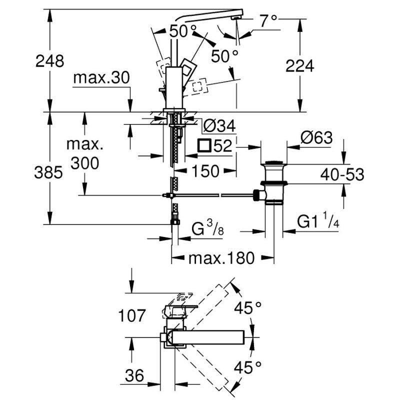 Praustuvo maišytuvas Grohe Eurocube L, su dugno vožtuvu