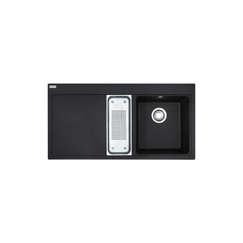 Granitinė plautuvė Franke Mythos MTG 651-100, dubuo dešinėje, su ventiliu ir indu. Dubenų matmenys - 360x390x200/160x390x140 mm. Plautuvė stačiakampio formos, juodos spalvos, modernaus dizaino, todėl tiks prie įvairaus virtuvės interjero. Plautuvė Franke Mythos MTG 651-100, su nusausinimo plokštuma, montuojama ant stalviršio, taip pat integruotas platus 3.1/2" paspaudžiamas ventilis. Suteikiama 2 metų garantija.