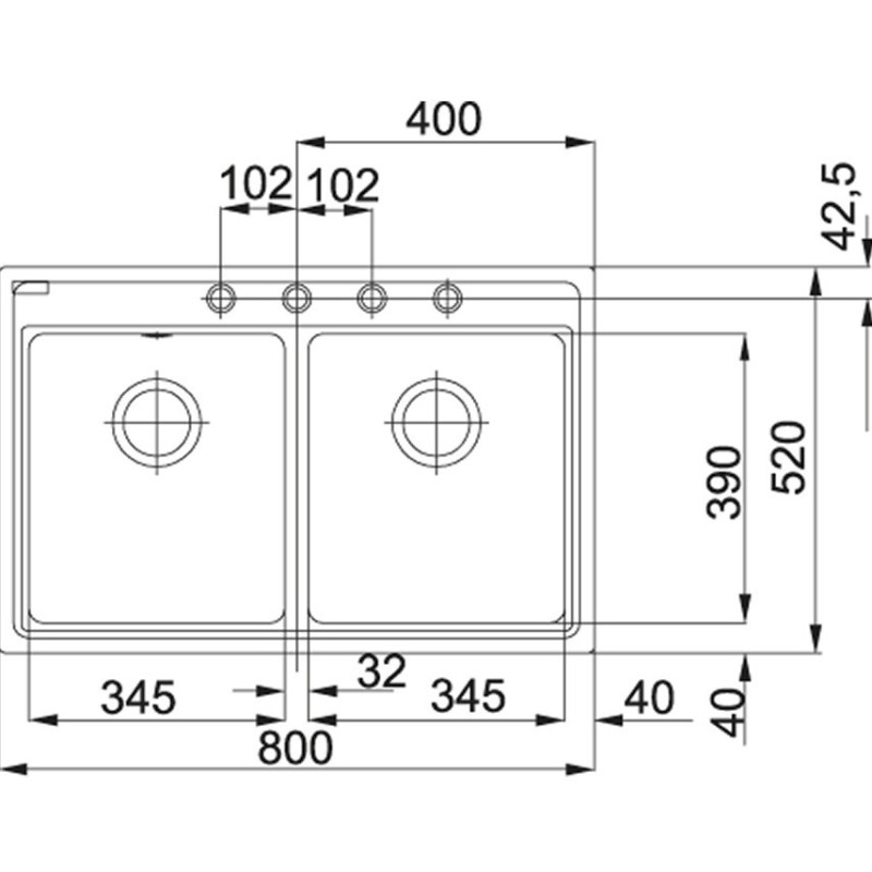Granitinė plautuvė Franke Maris MRG 620, su ventiliu. Dubens matmenys - 345x390x200mm. Plautuvė dviguba, stačiakampio formos, įvairių spalvų, modernaus dizaino, todėl tiks prie įvairaus virtuvės interjero. Plautuvė Franke Maris MRG 620, be nusausinimo plokštumos, montuojama ant stalviršio, taip pat integruotas platus 3.1/2" ekscentrinis ventilis. Suteikiama 2 metų garantija.