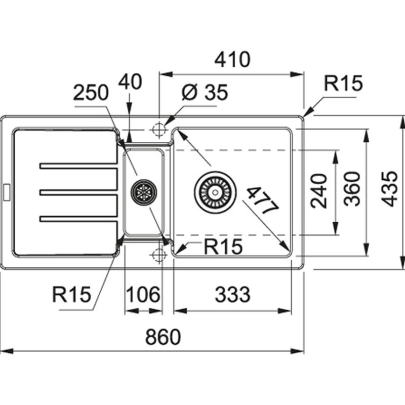 Granitinė plautuvė Franke Strata STG651-86, su ekscentriniu ventiliu ir indu. Dubenų matmenys - 333x360x166/106x240x94mm. Plautuvė stačiakampio formos, juodos spalvos, modernaus dizaino, todėl tiks prie įvairaus virtuvės interjero. Plautuvė Franke Strata STG651-86, su nusausinimo plokštuma, montuojama ant stalviršio, taip pat integruotas platus 3.1/2" ekscentrinis ventilis. Suteikiama 2 metų garantija.