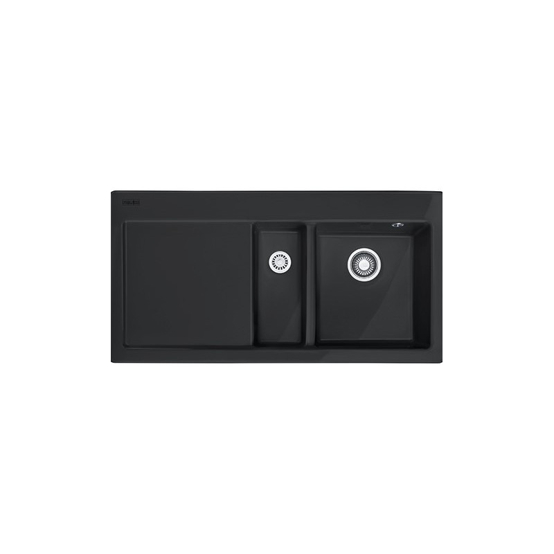 Keramikinė plautuvė Franke Mythos MTK651-100, dubuo dešinėje, su ventiliu. Dubenų matmenys - 340x372x190/157x372x120mm. Plautuvė stačiakampio formos, juodos spalvos, modernaus dizaino, todėl tiks prie įvairaus virtuvės interjero. Plautuvė Franke Mythos MTK651-100, su nusausinimo plokštuma, montuojama ant stalviršio, taip pat integruotas platus 3.1/2" ekscentrinis ventilis. Suteikiama 2 metų garantija.
