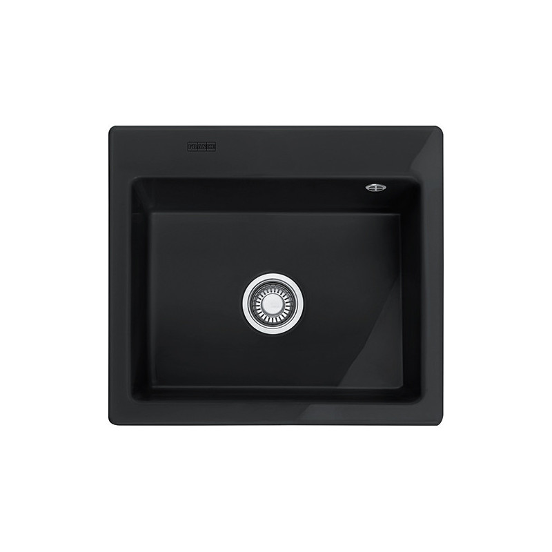 Keramikinė plautuvė Franke Mythos MTK610-58, juoda, su ventiliu. Dubens matmenys - 490x377x190mm. Plautuvė stačiakampio formos, juodos spalvos, modernaus dizaino, todėl tiks prie įvairaus virtuvės interjero. Plautuvė Franke Mythos MTK610-58, be nusausinimo plokštumos, montuojama ant stalviršio, taip pat integruotas platus 3.1/2" ekscentrinis ventilis. Suteikiama 2 metų garantija.