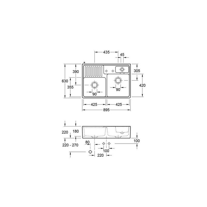 Keramikinė plautuvė Villeroy&Boch Double Bowl dviguba, baltos spalvos. Matmenys - 895x220x630mm. Plautuvė stačiakampio formos, baltos spalvos, modernaus dizaino, todėl tiks prie įvairaus virtuvės interjero. Plautuvė Villeroy&Boch Double Bowl, be nusausinimo plokštumos. Suteikiama 2 metų garantija.