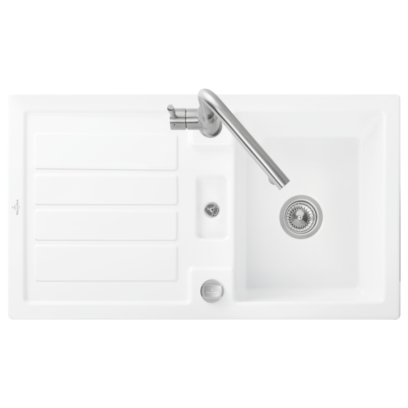 Keramikinė plautuvė Villeroy&Boch Flavia 50, baltos spalvos. Matmenys - 900x510mm. Plautuvė stačiakampio formos, montuojama ant stalviršio, baltos spalvos, modernaus dizaino, todėl tiks prie įvairaus virtuvės interjero. Plautuvė Villeroy&Boch Flavia 50, su nusausinimo plokštuma. Suteikiama 2 metų garantija.