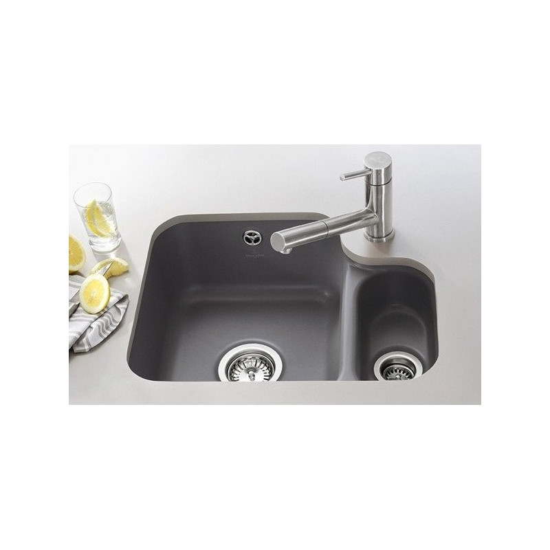 Keramikinė plautuvė Villeroy&Boch Cisterna 60B, chromit (blizgančios juodos) spalvos, dviguba. Matmenys - 545x440mm. Plautuvė stačiakampio formos, montuojama iš apačios, chromit spalvos, modernaus dizaino, todėl tiks prie įvairaus virtuvės interjero. Plautuvė Villeroy&Boch Cisterna 60B, chromit spalvos, be nusausinimo plokštumos, su ekscentriniu ventiliu. Suteikiama 2 metų garantija.