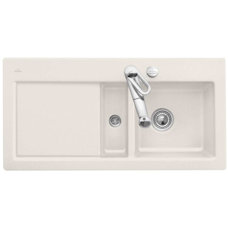 Keramikinė plautuvė Villeroy&Boch Subway 60 Flat, dubuo dešinėje, kreminės spalvos, 3 skylės maišytuvui. Matmenys - 1000x510mm. Plautuvė stačiakampio formos, kreminės spalvos, modernaus dizaino, todėl tiks prie įvairaus virtuvės interjero. Plautuvė Villeroy&Boch Subway 60 Flat, su nusausinimo plokštuma. Suteikiama 2 metų garantija.