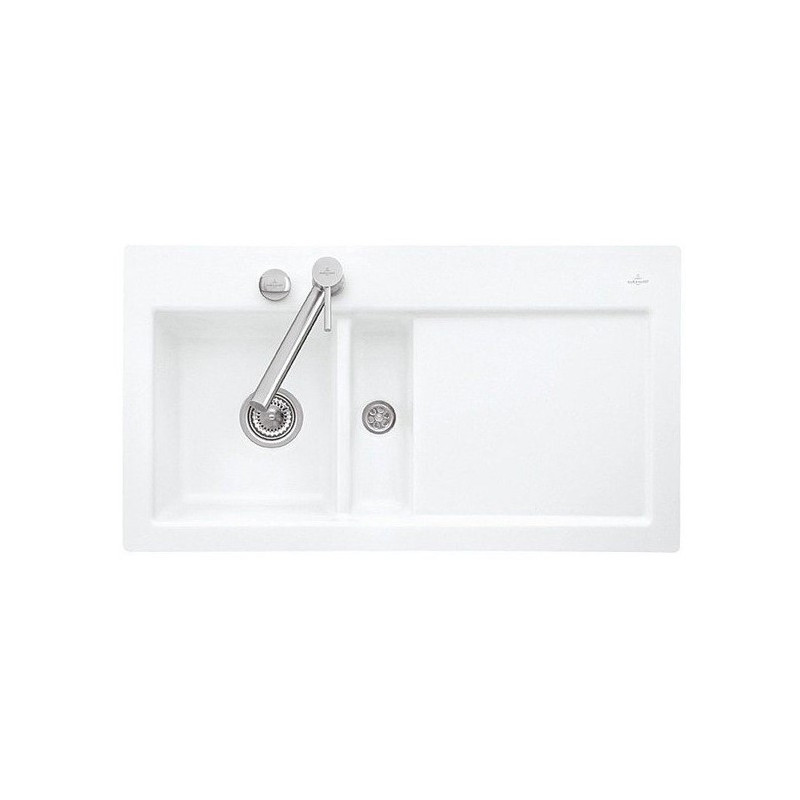 Keramikinė plautuvė Villeroy&Boch Subway 50, dubuo kairėje, baltos spalvos, 2 skylės maišytuvui. Matmenys - 915x510mm. Plautuvė stačiakampio formos, baltos spalvos, modernaus dizaino, todėl tiks prie įvairaus virtuvės interjero. Plautuvė Villeroy&Boch Subway 50, su nusausinimo plokštuma. Suteikiama 2 metų garantija.