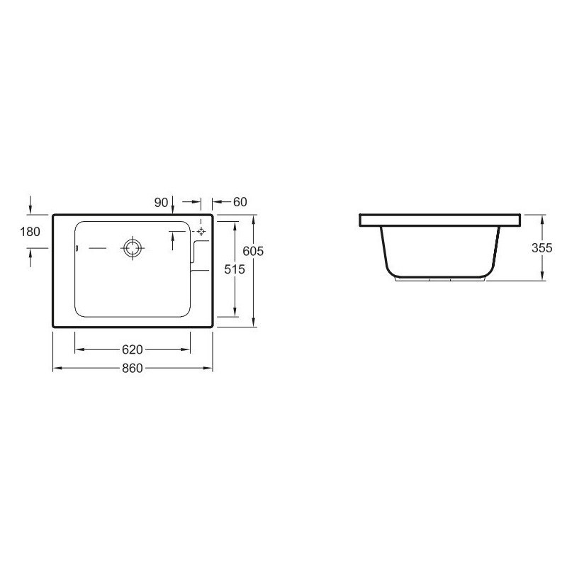 Keramikinė, Stačiakampė, Naudojama skalbimui, Baltos spalvos, Matmenys - 860x355x605mm, Lengvai valomas paviršius, Keramika atspari smūgiams ir įbrėžimams