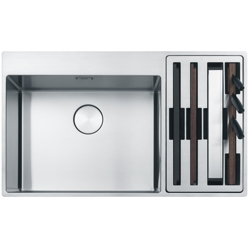 Nerūdijančio plieno plautuvė Franke Center Box BWX 220-54-27 TL, su priedais. Matmenys - 540x410x200 mm. Plautuvė stačiakampio formos, su blizgiu paviršiumi, modernaus dizaino, todėl tiks prie įvairaus virtuvės interjero. Plautuvė Franke Center Box BWX 220-54-27 TL, montuojama po stalviršiu (iš apačios), taip pat integruotas platus 3.1/2" užkemšamas ventilis. Dubuo kairėje. Suteikiama 2 metų garantija.