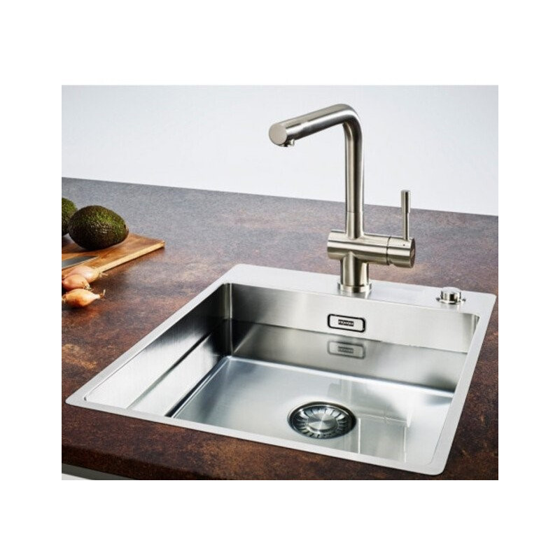 Nerūdijančio plieno plautuvė Franke Box BXX 210/110-34. Matmenys - 340x410x200mm. Plautuvė stačiakampio formos, su blizgiu paviršiumi, modernaus dizaino, todėl tiks prie įvairaus virtuvės interjero. Plautuvė Franke Box BXX 210/110-34, montuojama po stalviršiu (iš apačios), taip pat integruotas platus 3.1/2" užkemšamas ventilis. Suteikiama 2 metų garantija.