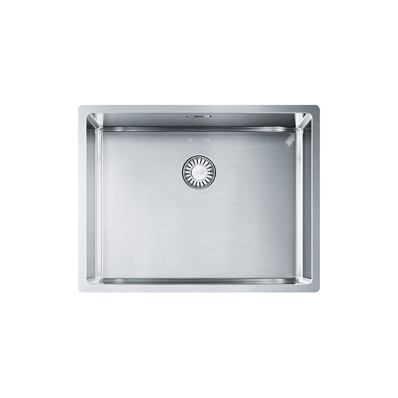 Nerūdijančio plieno plautuvė Franke Box BXX 210/110-54. Matmenys - 540x410x200mm. Plautuvė stačiakampio formos, su blizgiu paviršiumi, modernaus dizaino, todėl tiks prie įvairaus virtuvės interjero. Plautuvė Franke Box BXX 210/110-54, montuojama po stalviršiu (iš apačios), taip pat integruotas platus 3.1/2" užkemšamas ventilis. Suteikiama 2 metų garantija.