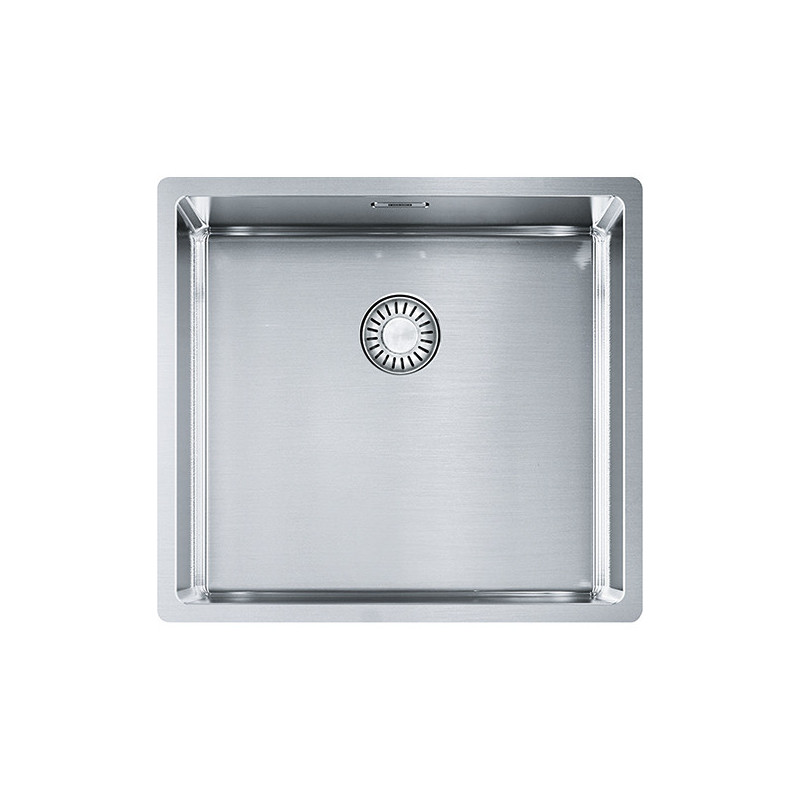 Nerūdijančio plieno plautuvė Franke Box BXX 210/110-45, su paspaudžiamu apvaliu ventilio valdymo mygtuku. Matmenys - 450x410x200mm. Plautuvė stačiakampio formos, su blizgiu paviršiumi, modernaus dizaino, todėl tiks prie įvairaus virtuvės interjero. Plautuvė Franke Box BXX 210/110-45, montuojama po stalviršiu (iš apačios), taip pat integruotas platus 3.1/2" ventilis, kuris valdomas apvaliu paspaudžiamu mygtuku. Suteikiama 2 metų garantija.